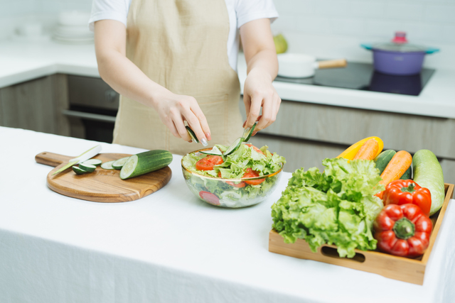 吃油炸食物時候應多攝取膳食纖維多的青菜,